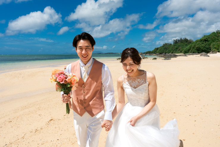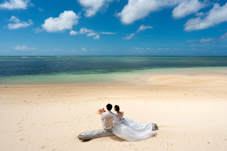 コバルトブルーの水面はがとっても綺麗な夏の沖縄で、大切な方とのウェディングフォトはいかがですか?