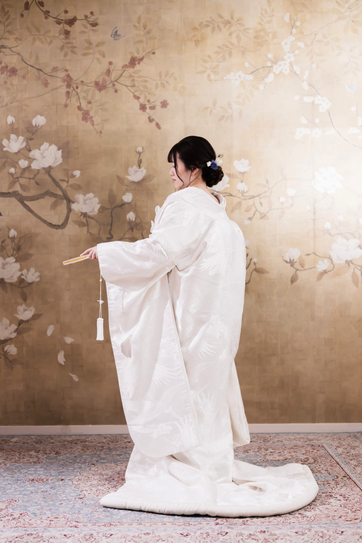 美しい白無垢を綺麗に魅せるバックショットは必ずお撮りしております^^