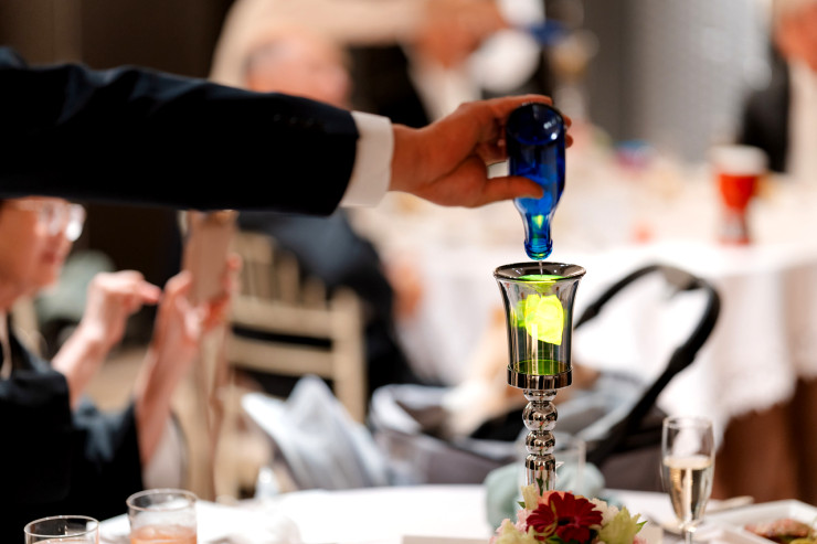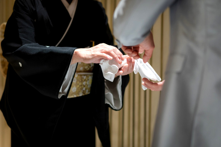 日本の伝統的な婚礼儀式である水合わせの儀を現代風にアレンジした演出で