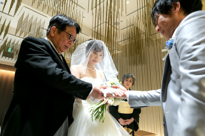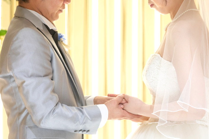 言葉ではなく、手と手をしっかりと握り合うことで交わす誓いに、