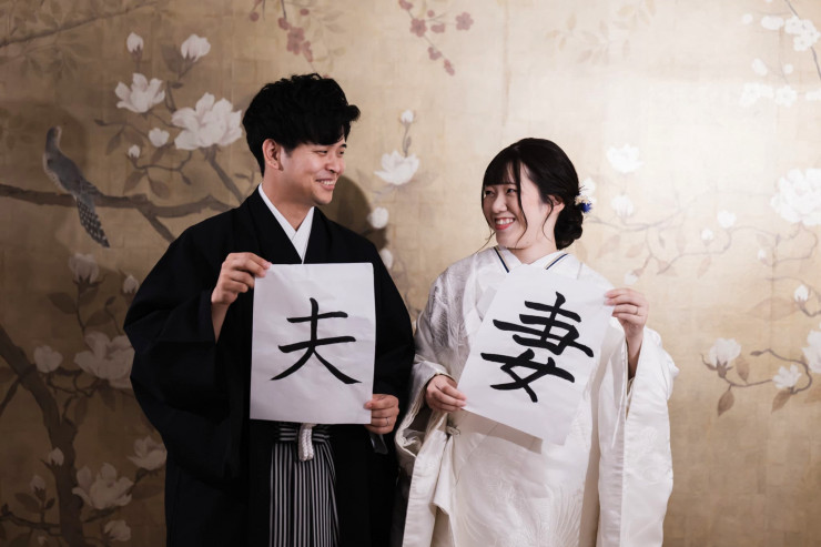 新郎様は「夫」を、新婦様は「妻」を筆で書いてきてくださったお2人^^