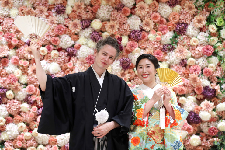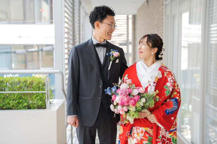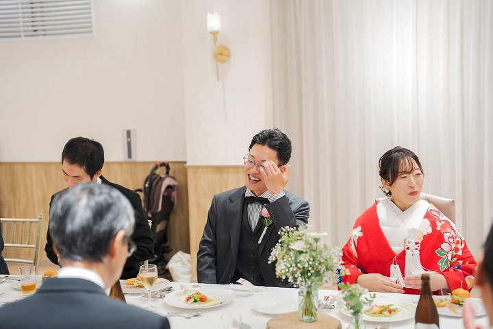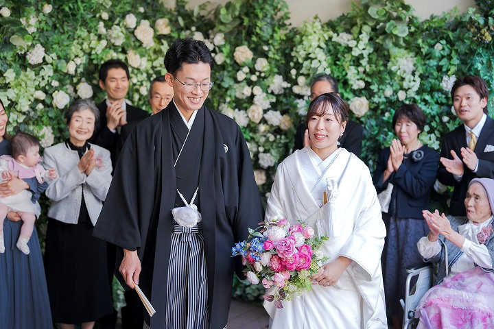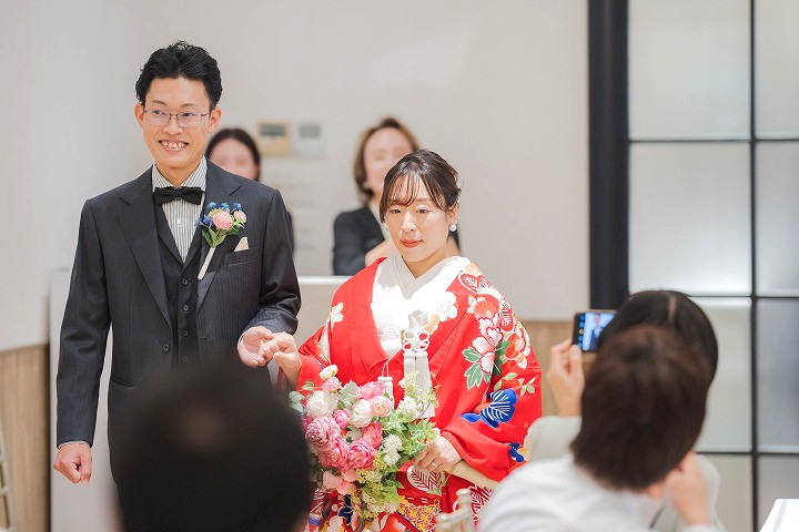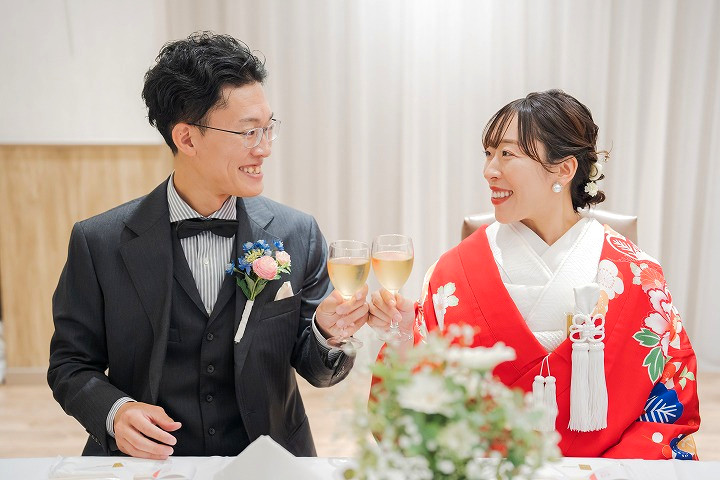 ご会食ではタキシード×色打掛をお選びいただきました✨