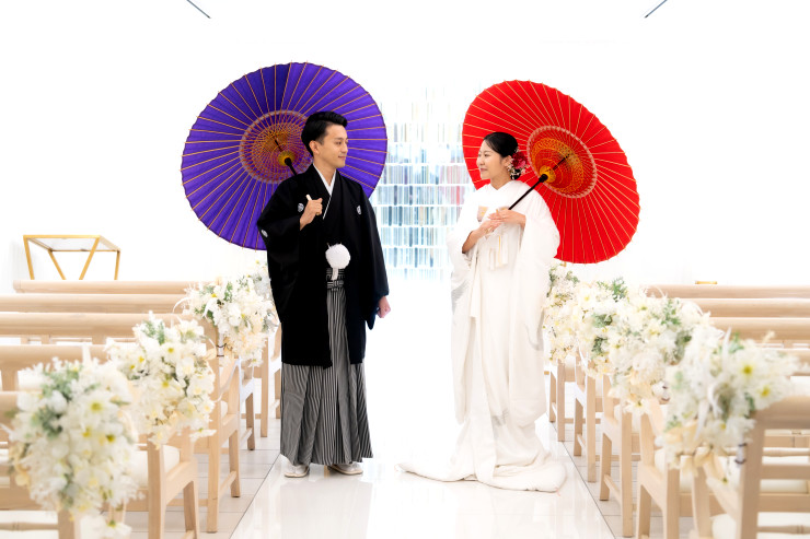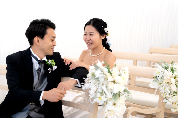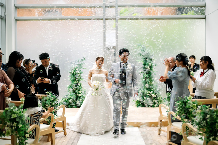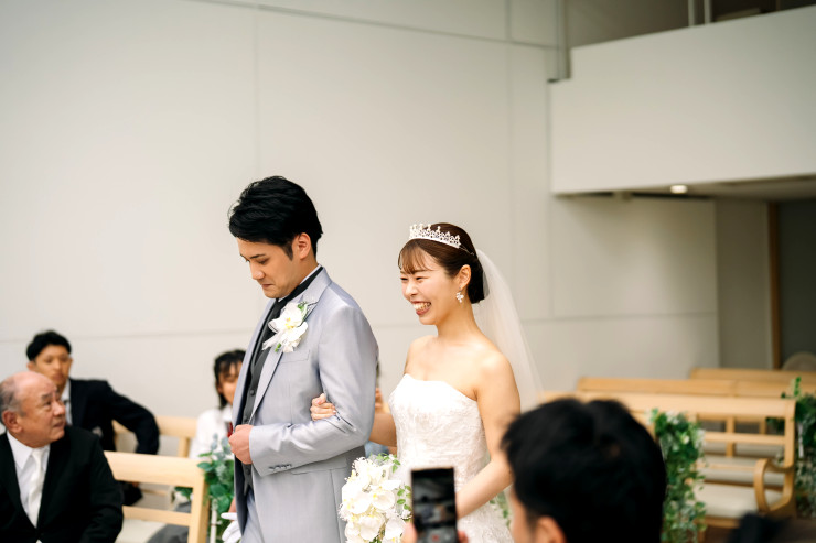チャペルに柔らかな光が差し込み、新郎新婦とゲストの笑顔が響きあった結婚式。