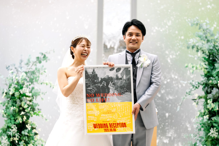 結婚証明書には家族や友人の温かなメッセージが刻まれ、一生の宝物に。
