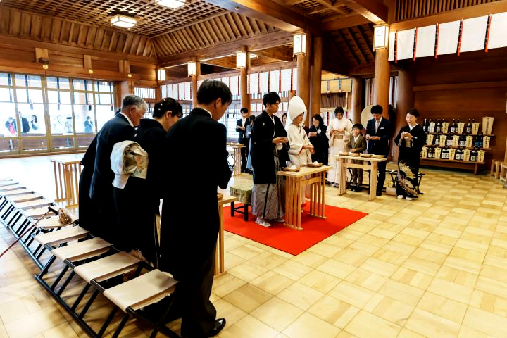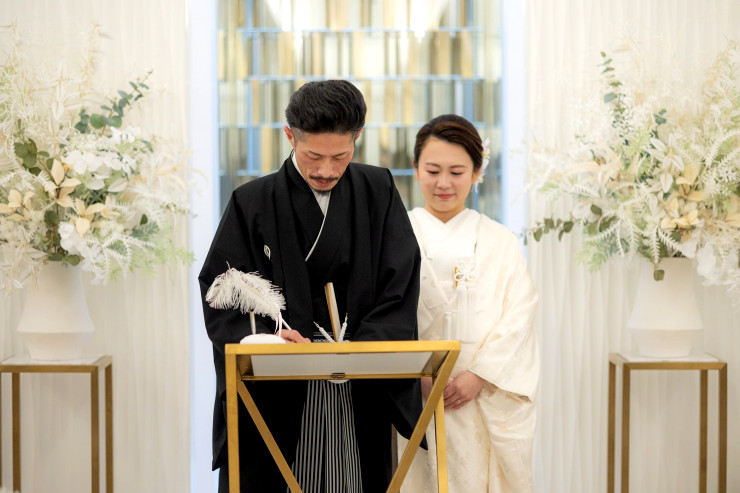 和装人前式は神前式の形式を取り入れつつ、ゲストの前で儀式を行うことが可能です!