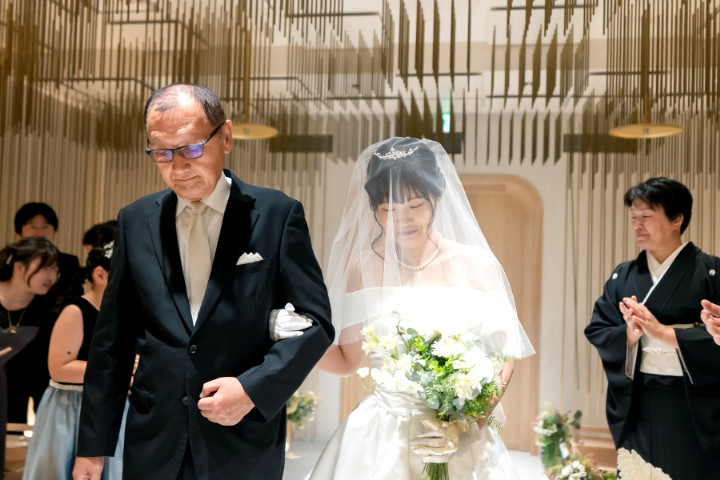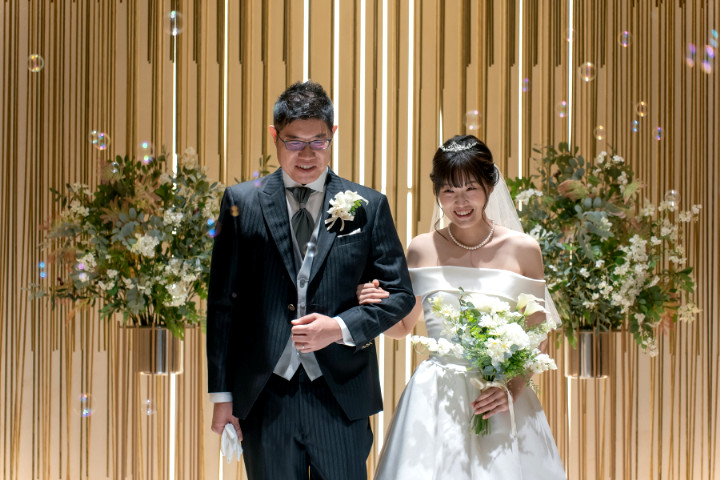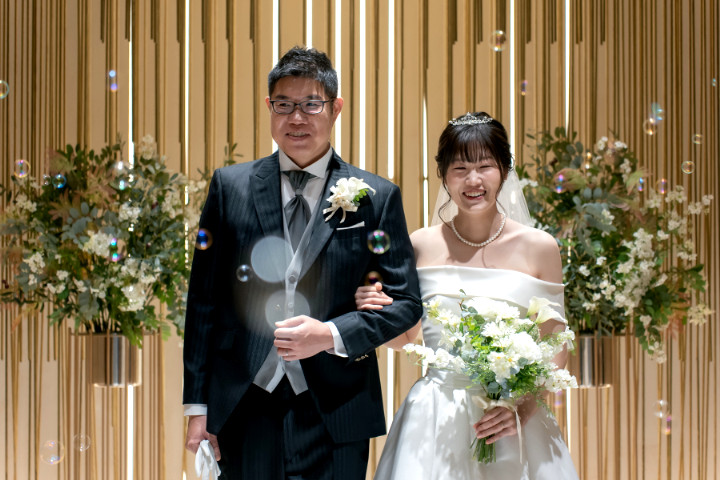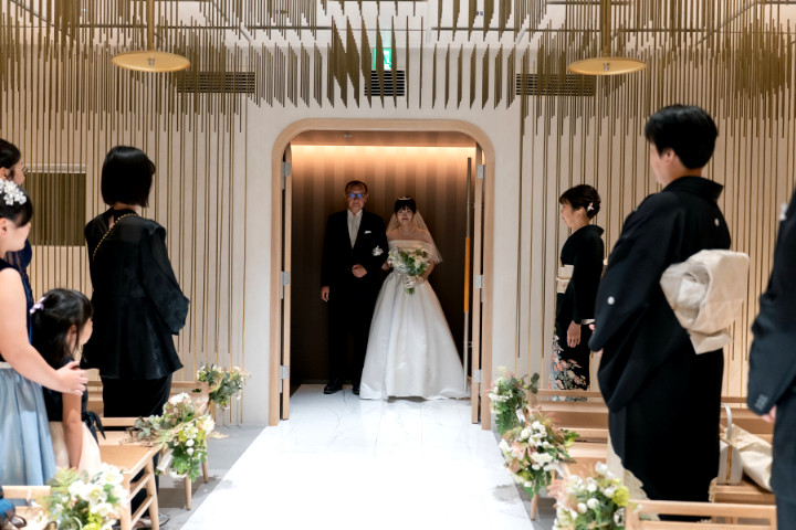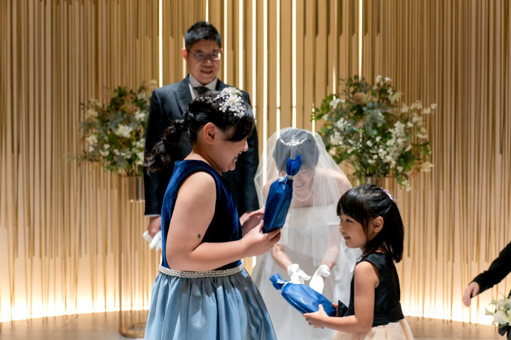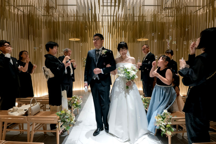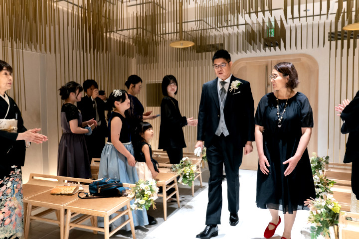 ご家族の皆様にお手伝いいただきながらの結婚式の入場