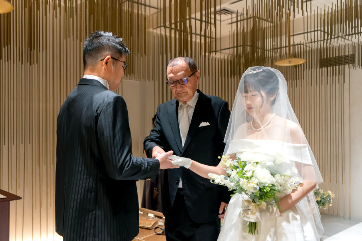 まずはお2人の大切な指輪を持ってきていただくリングベアラー