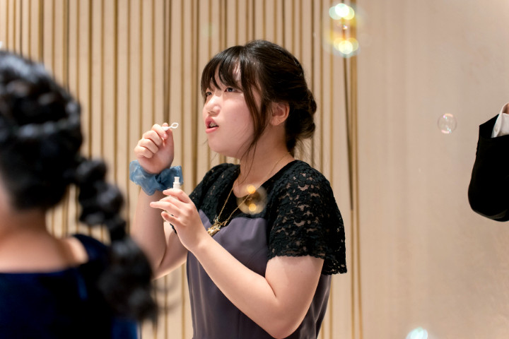 最近ではシャボン玉を吹いてもらうバブルシャワーが人気なんです!