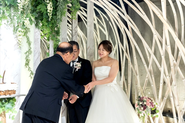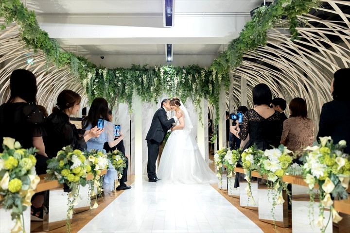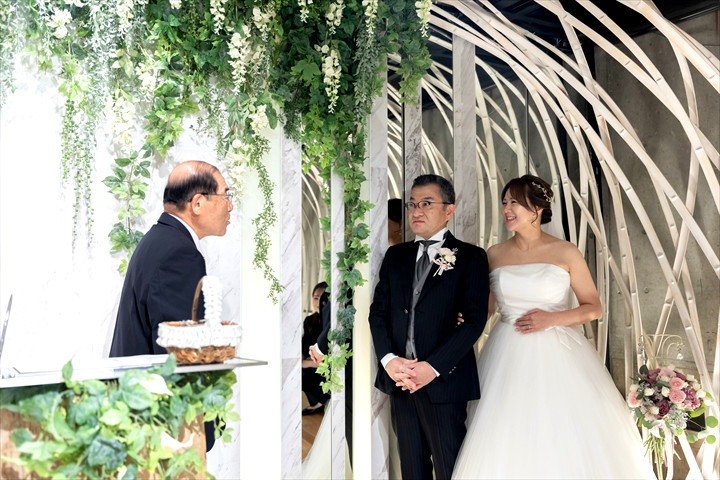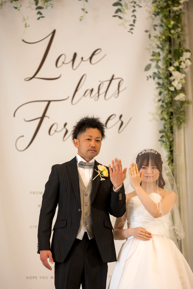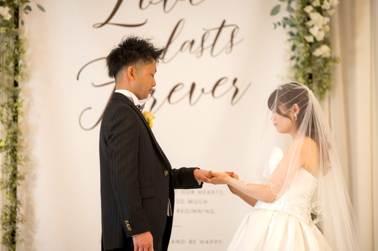 誓いの言葉や指輪の交換でお互いに永遠の愛を誓いあっていただいたお2人は
