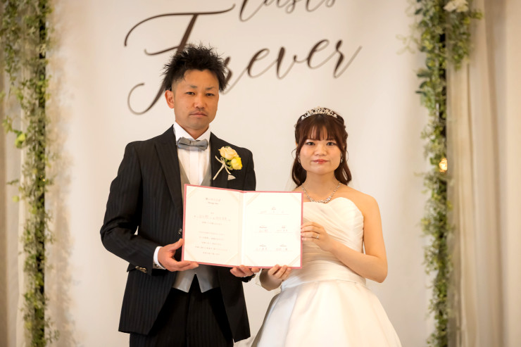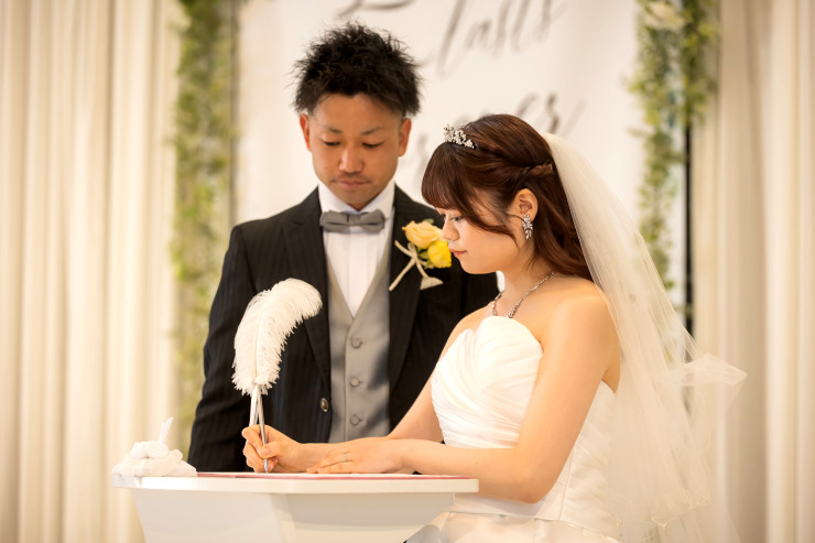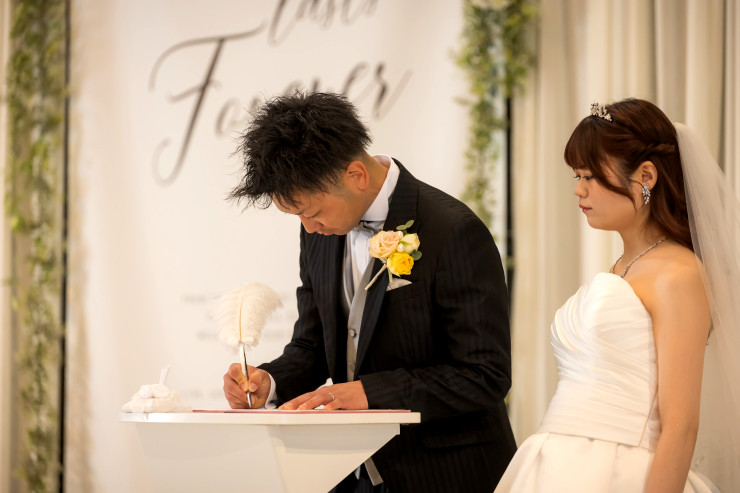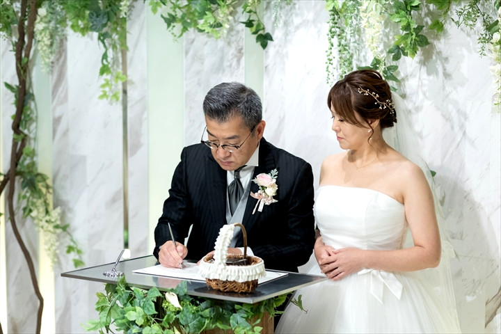 誓いの言葉にお2人のサインとご列席の代表者さまからのサインをいただき