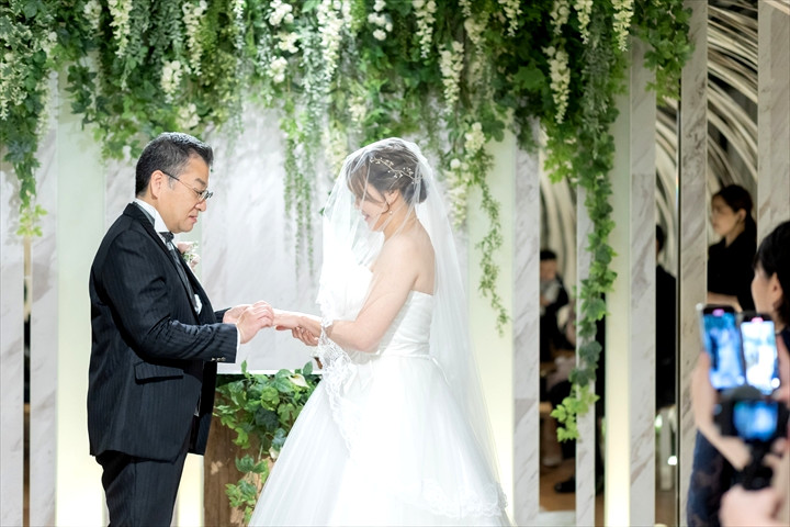 可愛らしいお子様から指輪を受け取られたお2人は指輪の交換を行っていただきました