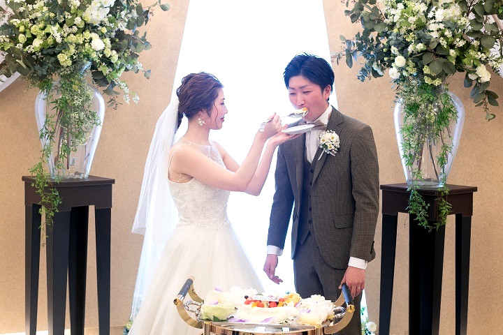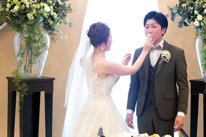 色々ある演出の中でも王道の「ケーキカット」&「ファーストバイト」が福岡店では人気No1!!