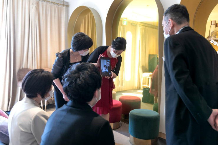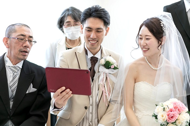 挙式もしっかり見届けて頂き、集合写真にも画面からご参加いただきました