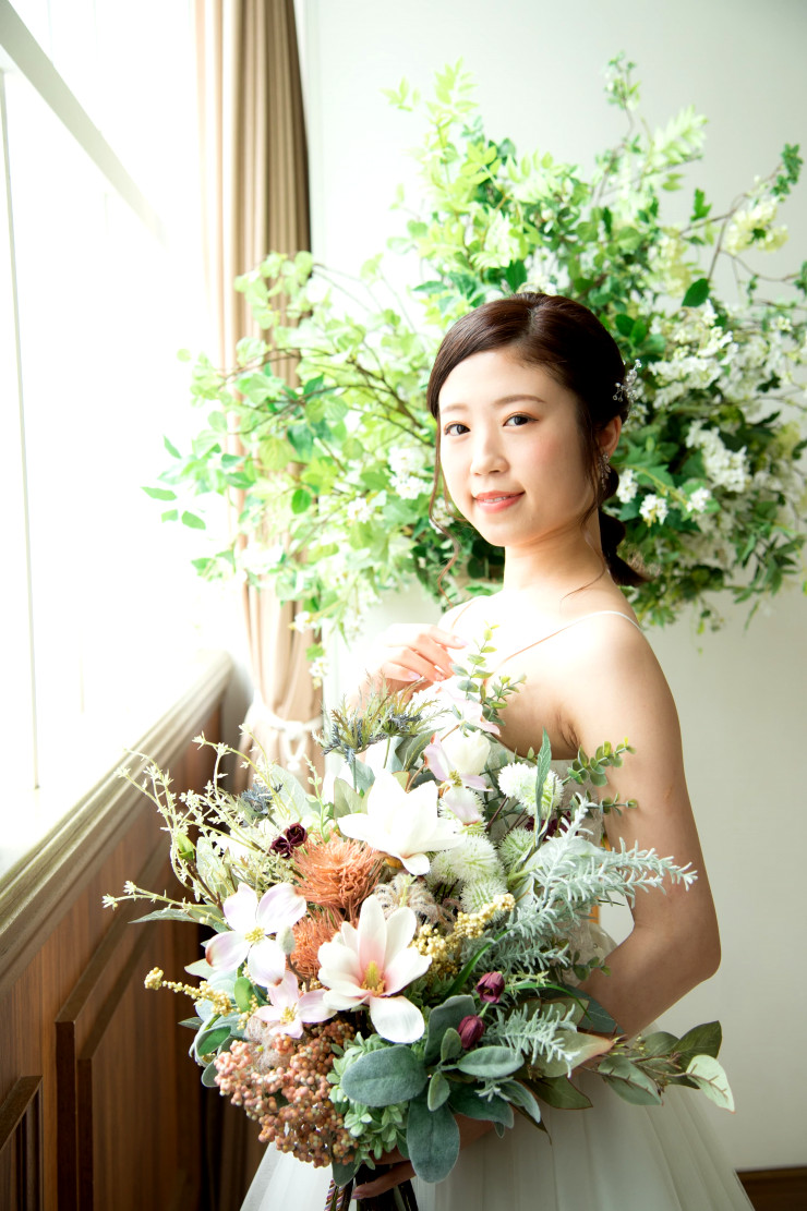 色鮮やかなブーケとのお写真。