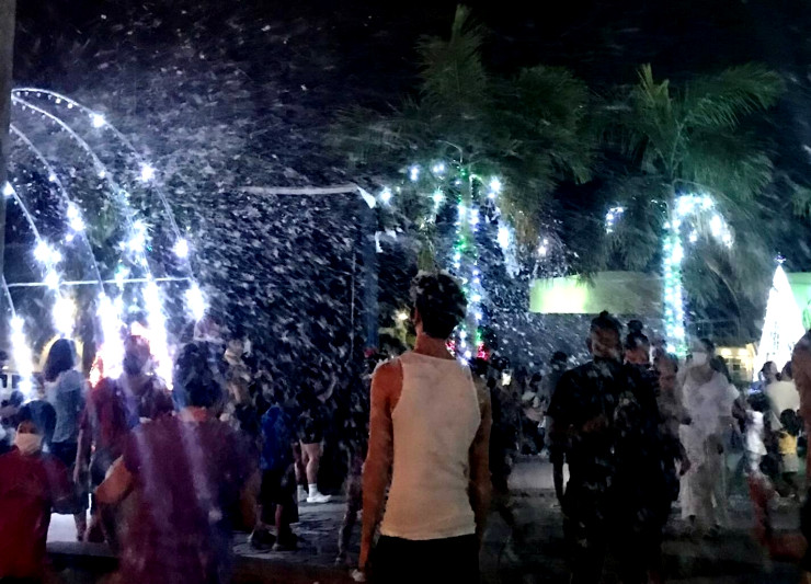 人口雪まであり、子供は大はしゃぎで『雪』を掴もうと必死で両手を延ばしていました!