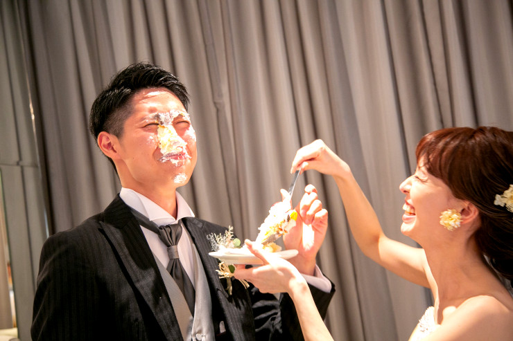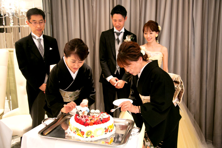 お二人もご両親が、ケーキを食べさせ合う姿は