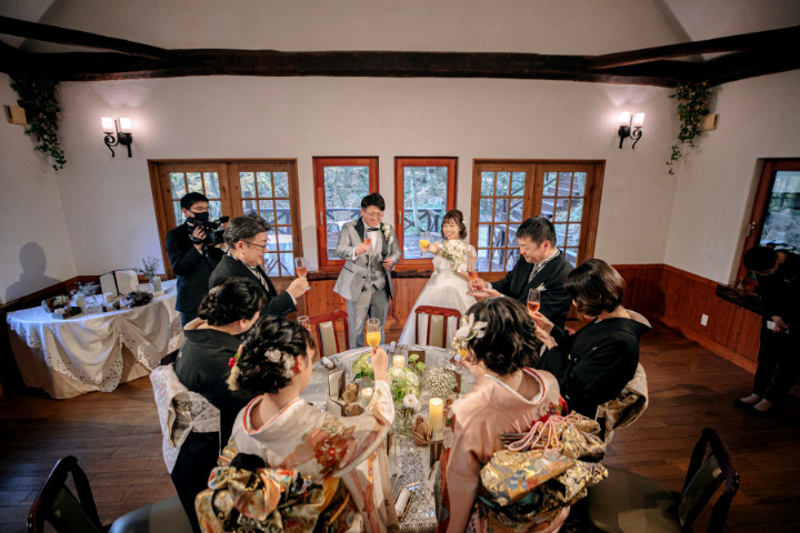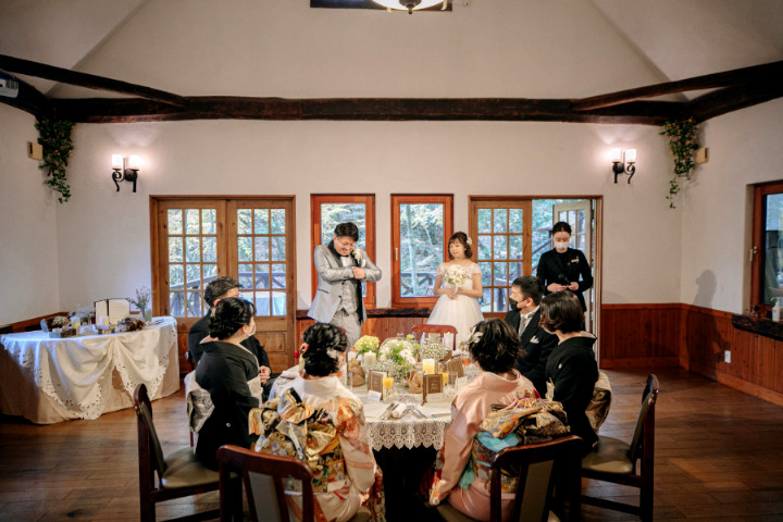 森の邸宅彩音さんには少人数専用の会食会場がございますので、挙式後にシンプルでアットホームな会食が叶います。
