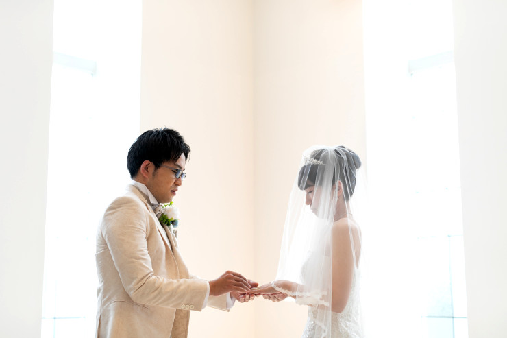 お二人に指輪が届きましたらお二人による指輪交換です。