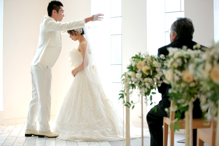 ご新婦様はベールダウンで最後のお仕度が完成されました