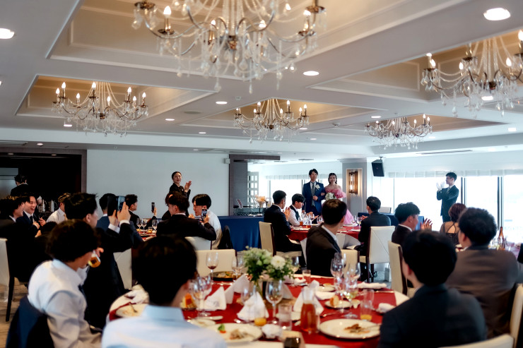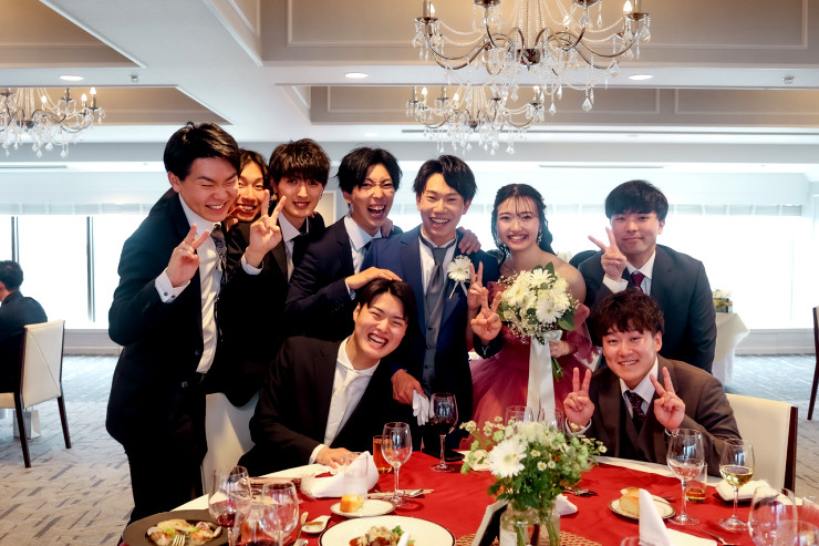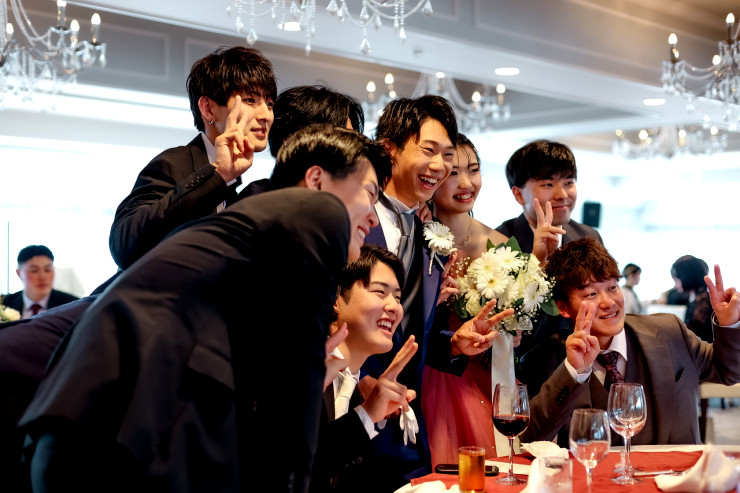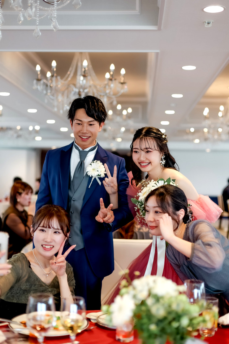 お色直し入場をされた新郎新婦様と集合写真タイムです^^♪