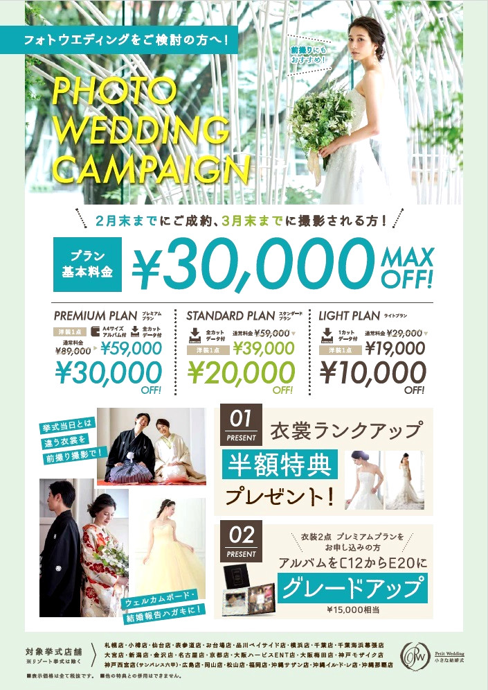 【5月までの挙式、フォトウエディングが大変お得です!】