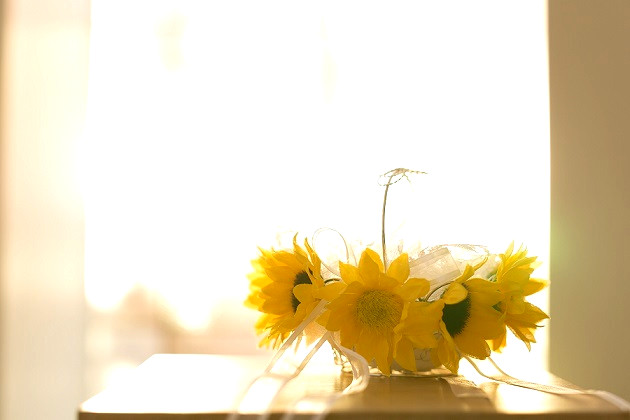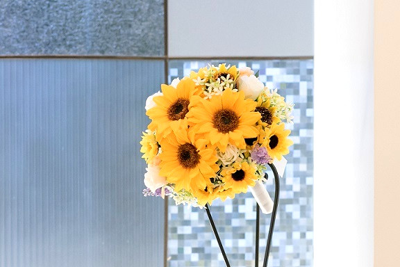 ご新婦様のお髪の色もほんのりとひまわりカラーです^^