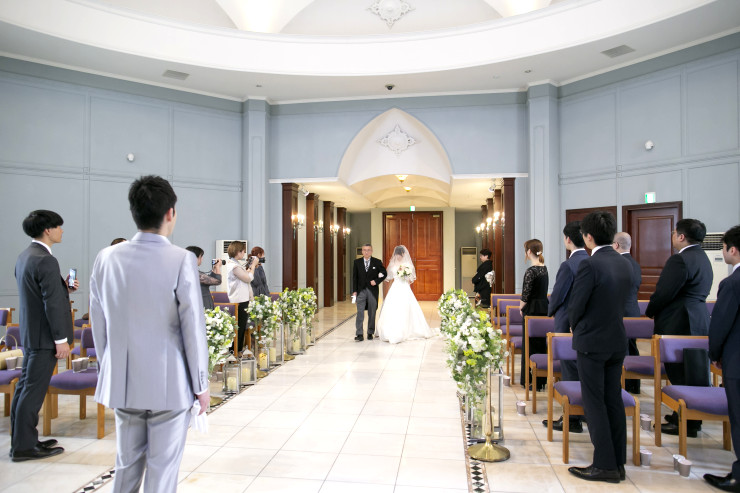 お父様とバージンロードを歩まれ、ご新郎様へバトンタッチ