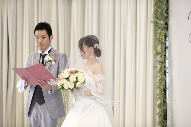 お二人おそろいになられましたら、皆様の前で誓いの言葉をお読みいただきます
