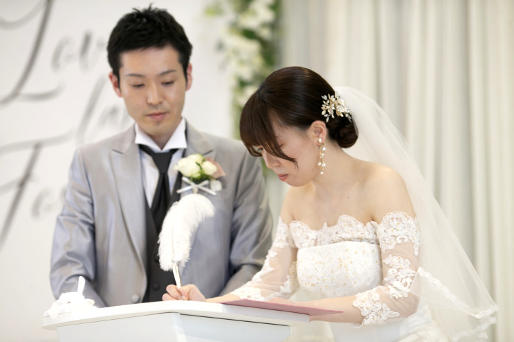 ベールアップの後は結婚証明書にお二人ご署名を🖊