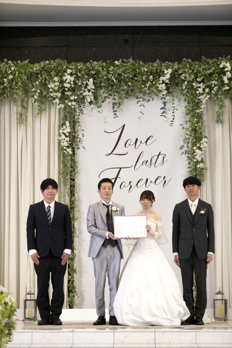 来ていただいたゲストの皆様にお二人の結婚の誓いの証人になっていただく