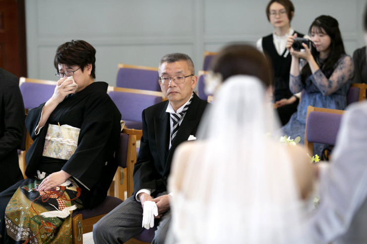 いつもとは違う装いのパパとママに少し戸惑いがちなお子様…