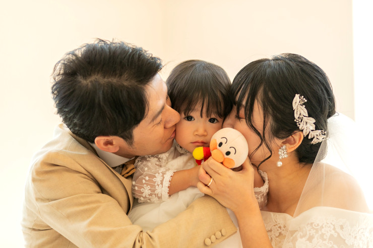 お子様と一緒に撮影に来てくださった新郎新婦様