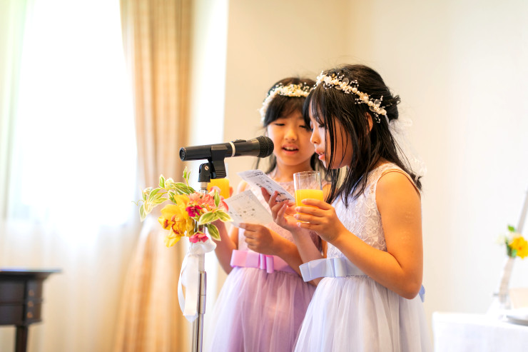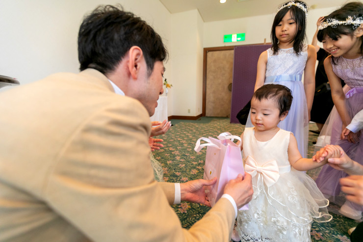 披露宴中盤では1日お手伝いをしてくれたお子様たちへ新郎新婦お2人よりプレゼントをお渡ししました♪