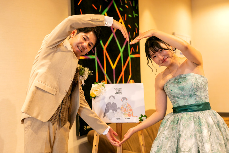 可愛いウエディングキスの後は、結婚誓約書へ仲良くサインと