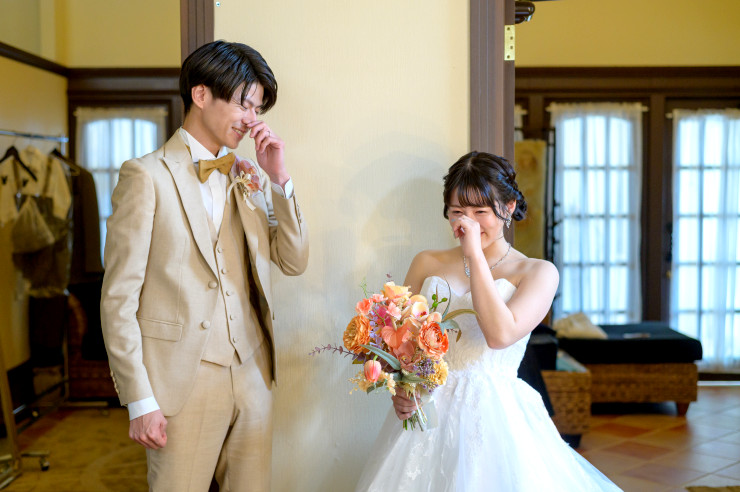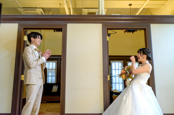 笑いもあり、照れを隠し切れない姿が、とても微笑ましいお二人です。