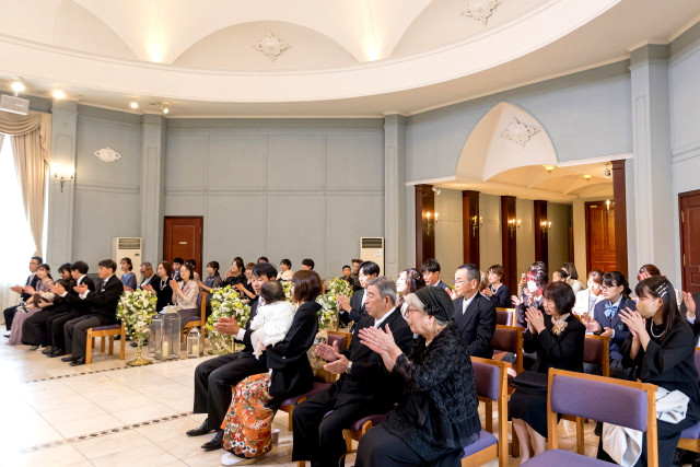 結びにご列席の皆様にお二人のご結婚を拍手で承認いただきます👏