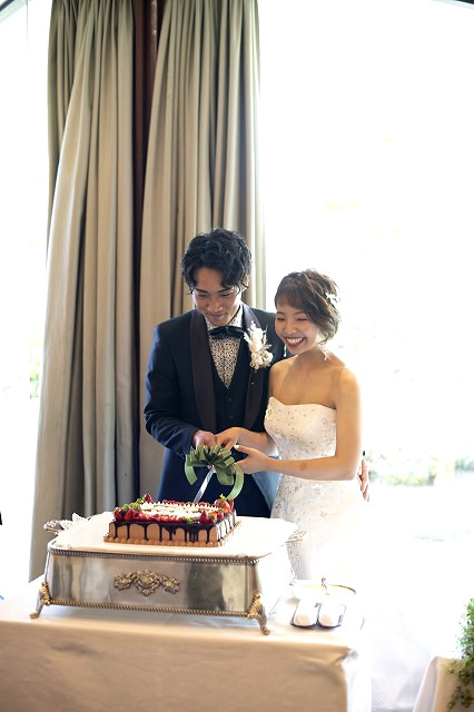 ファーストセレモニーとして新郎新婦によるウェディングケーキ入刀を行って頂きました。