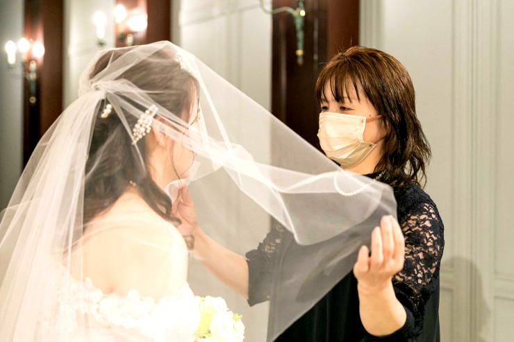 「最後の身支度」という意味を込めてお母様からベールを下ろして頂きます。