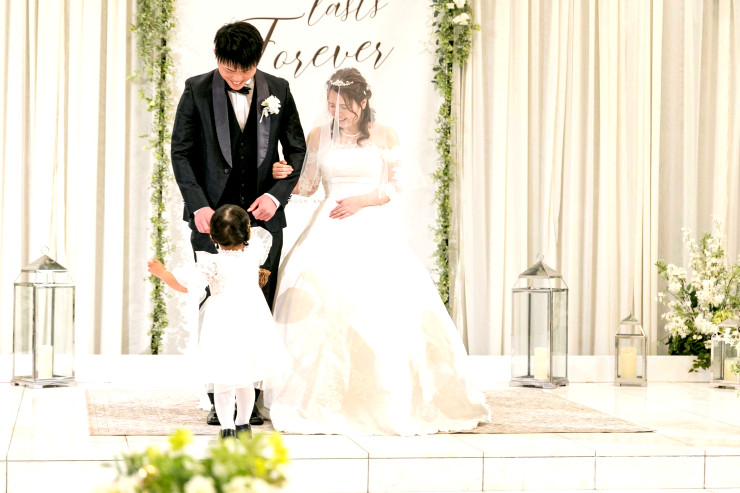 入場の歩き方や、ベールダウン、お子様の演出の練習も