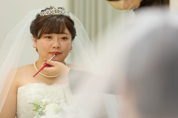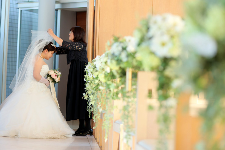 新婦様はお母様にベールダウンをしていただき最後の身支度を整え