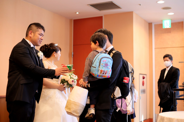 ご列席者様がお帰りの際にはプチギフトをお渡ししてお見送りをします。