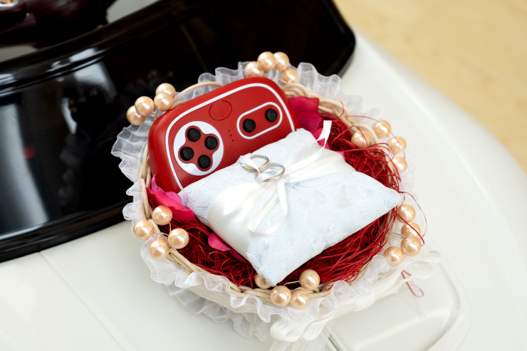 ラジコンカーの前部分には、手作りでリングピローを置くためのものを設置してくださいました!