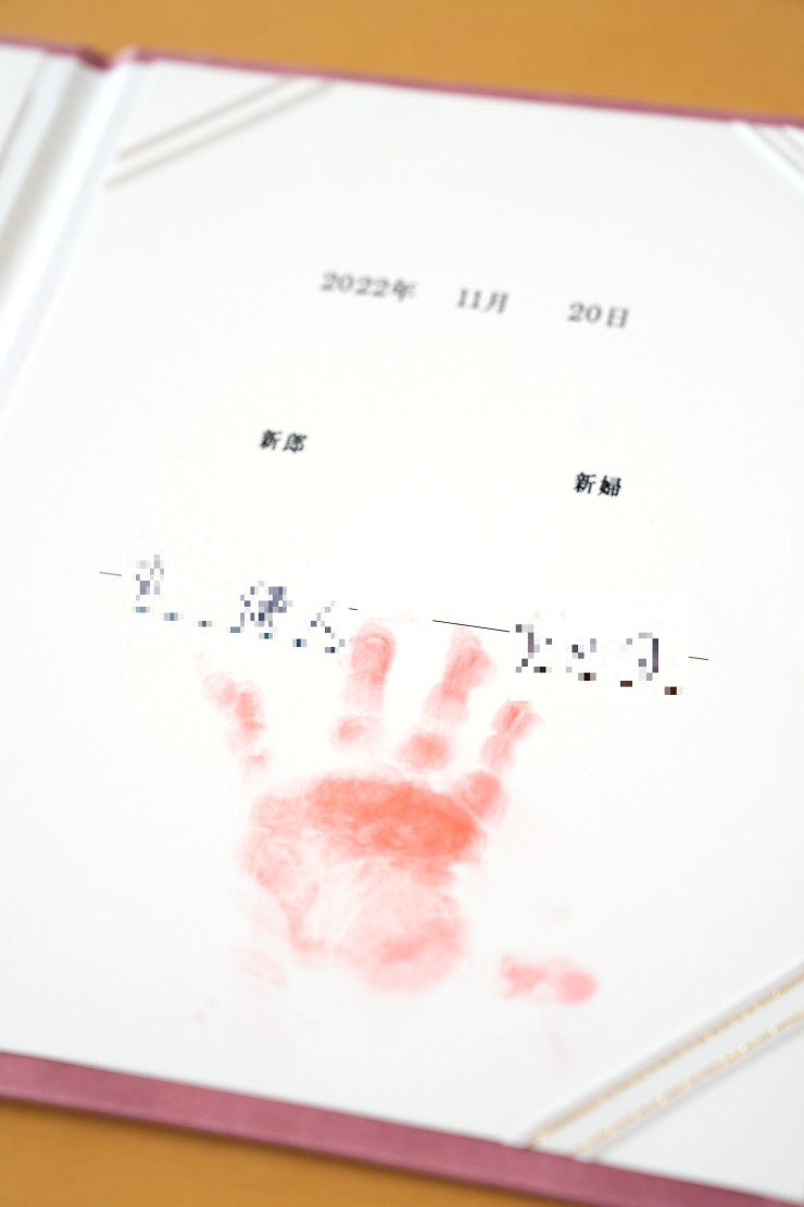 ご列席の方を代表して手形を押してくれたのですが、世界でたった一つの大切な誓約書を作ることができました!