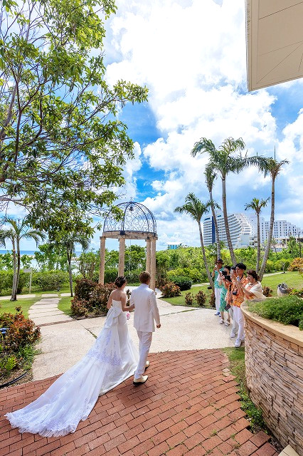 ゲストの皆様に見守られながら、お二人がガゼボに到着します。