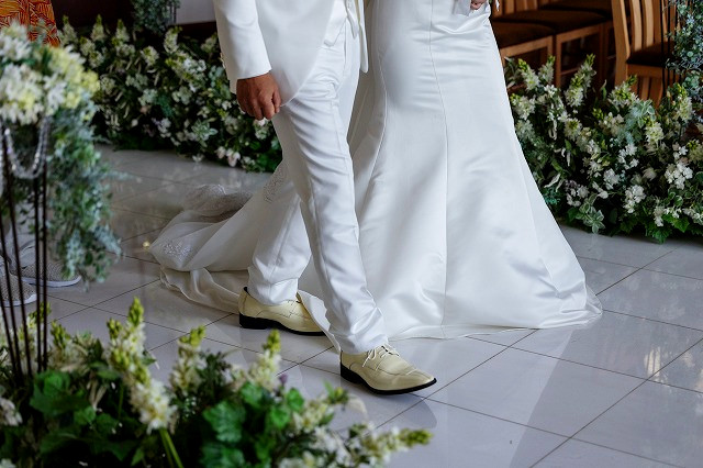 新郎にエスコートチェンジを行い、ここからは新郎新婦のお二人で歩んでいきます。