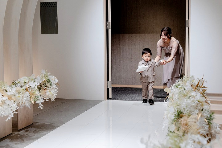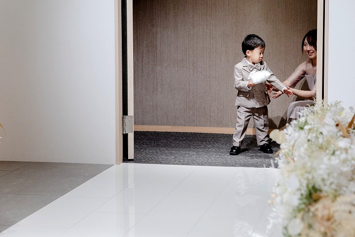 お二人の入場のあとは、可愛いリングボーイの登場です👦💙