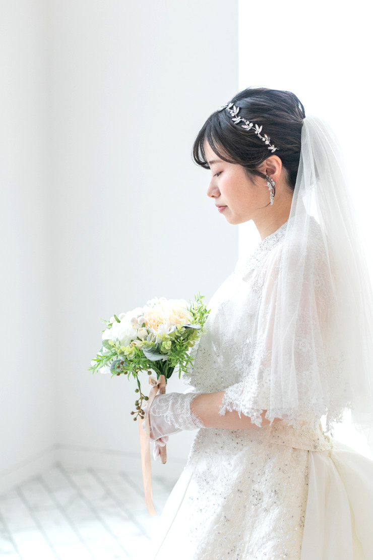 ドレスに合わせて白やグリーンのブーケ、