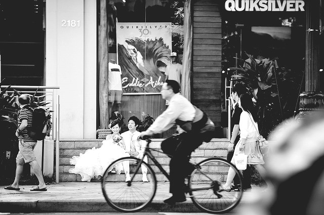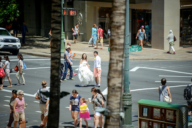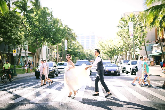 ワイキキタウンは数多くのカップルが撮影する、ウェディングスポットとしても人気エリアで