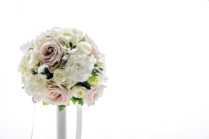 真っ白なチャペルにピッタリの淡いお色味のブーケ。