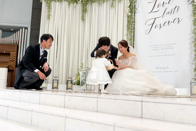 お二人のお支度が整いお写真撮影からはお子様もご一緒に👶